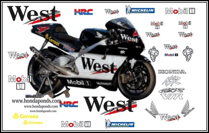Decoracion retro de los patrocinadores wst de las motos honda de gran premio